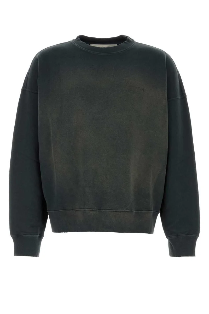 Unisex sweatshirt in worn black cotton with logo embroidery