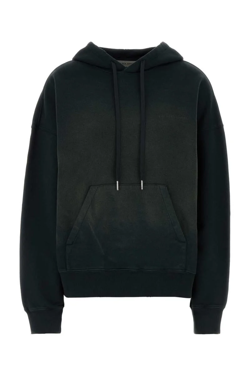 Unisex hooded sweatshirt in black cotton with a bleached effect