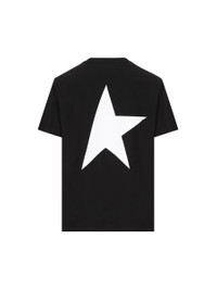 The Golden Goose T-shirt from the Star Collection stands out for its clean, striking graphic design. The contrasting white logo and star on the chest embody the brand's visual identity, for an urban, authentic style that stands out discreetly. - Material: 100% cotton - Color: black - Short sleeves - Maxi star on back - Crew neck - Logo print on front - Made in Italy - Item code: GWP01220P00087980203 Gender: Women Material: COTTON 100% Color: Black Made in: Italy Product ID: GWP01220P00087980203_AI25 *Import tax/duty will be calculated at checkout (If applicable)
