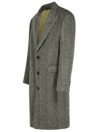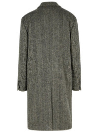 Men's single-breasted wool coat with beige and gray herringbone weave