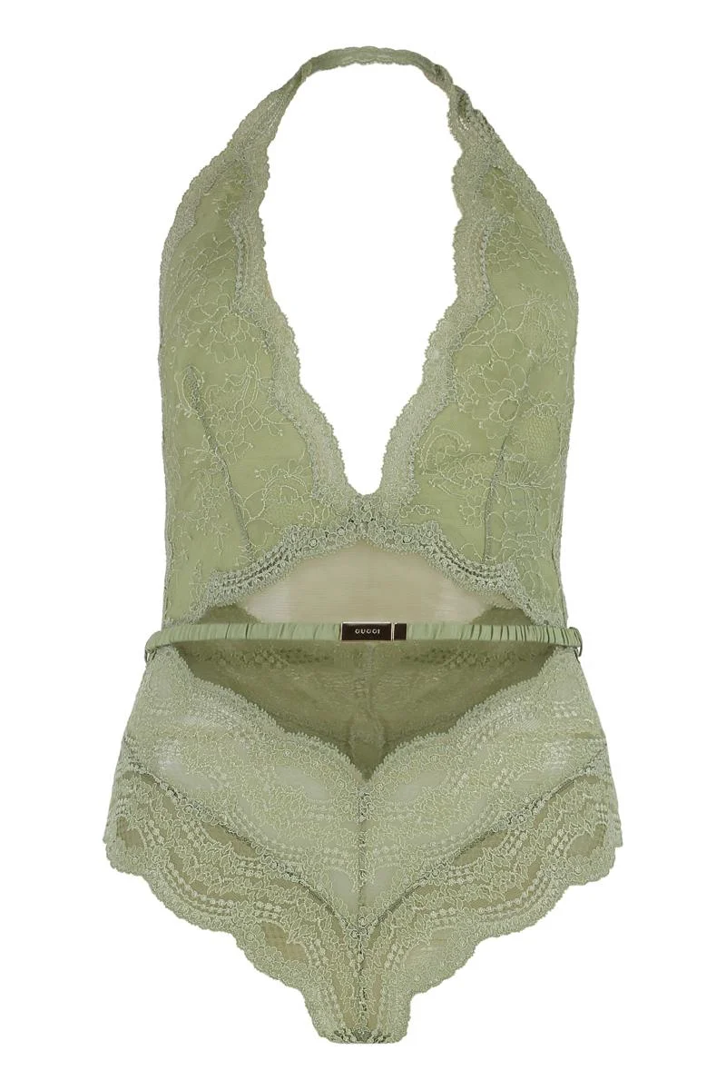 Body in tulle with floral lace Body made of green stretch tulle with floral lace. Defined by a deep V-neckline, the model is completed with a removable elastic waistband with a metal Gucci buckle. 82% Polyamide, 18% Elastane Gender: Women Material: POLYAMIDE Color: GREEN Made in: Italy Product ID: 839406XUANL_3196 *Import tax/duty will be calculated at checkout (If applicable)