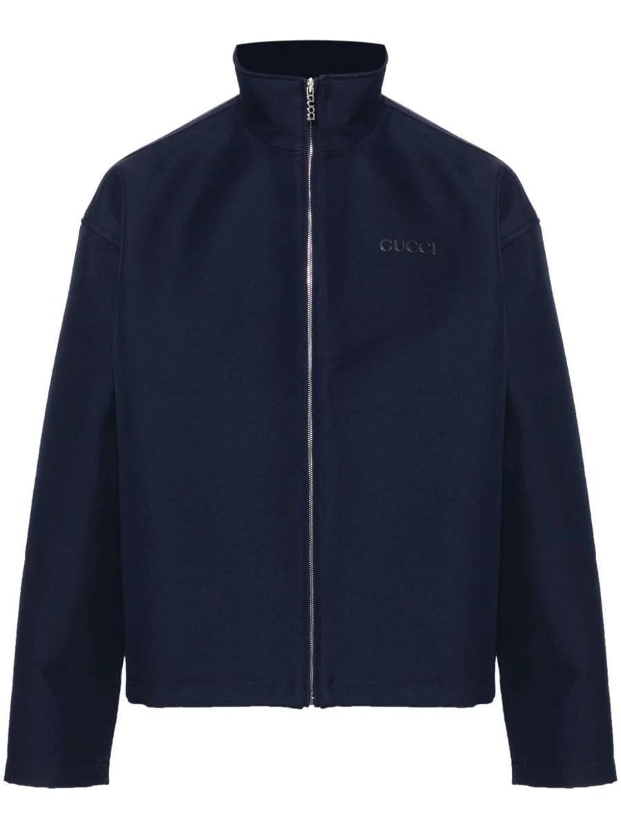 Wool acetate zip jacket with embroidery