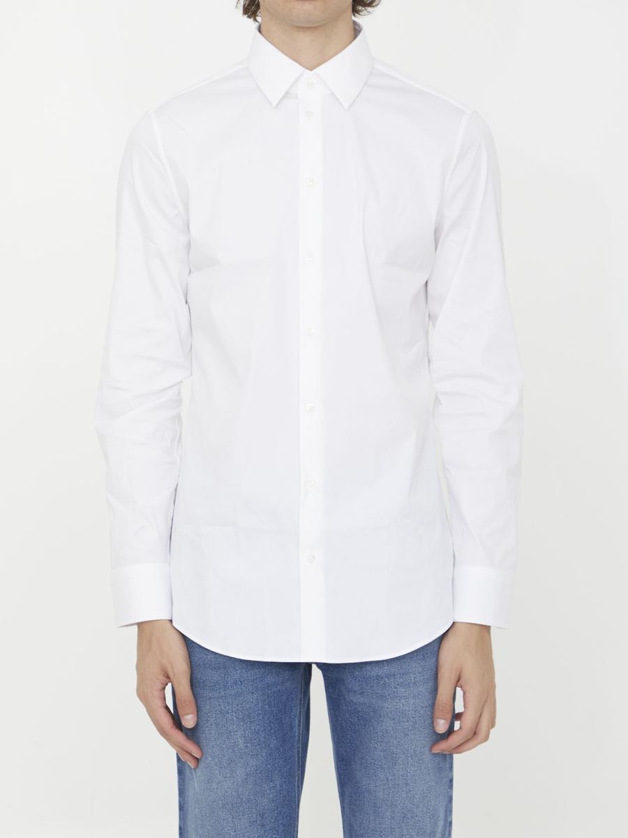 White stretch cotton poplin shirt with Double G embroidery on the front. It features pointed collar, front button closure and buttoned cuffs. Regular fit. The model is 190cm tall and wears size 16. Size nationality: EU Gender: Men Material: 78% COTTON, 17% POLYAMIDE, 5% ELASTANE Color: WHITE Made in: IT Product ID: 31649813 699563 ZAJON 9000 *Import tax/duty will be calculated at checkout (If applicable)
