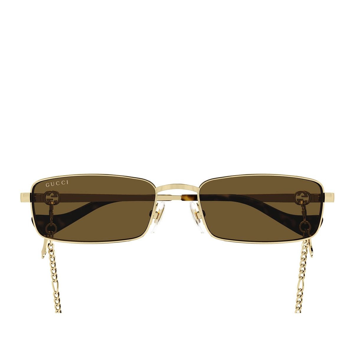 Sunglasses Gucci Eyewear Gold Brown Rectangle Metal WOMEN Dimensions: width of the lens 56 mm, length of the bridge 18 mm, length of the rods 140 mm Gender: Women Material: METAL Color: GOLD Made in: JP Product ID: GG1600S 002 *Import tax/duty will be calculated at checkout (If applicable) WARNING CALIFORNIA PROPOSITION 65 This product can expose you to chemicals including Nickel (Metallic), which is known to the State of California to cause cancer. For more information go to https://p65warnings.ca.gov California Health & Safety Code Section 25249.6 *Shipping eyewear products to US only For US customers, eyewear products are categorized as Class 1 medical devices by the 21 Code of Federal Regulations (CFR) - Food and Drug Administration (FDA). Baltini ships eyewear orders on a Delivery Duties Paid (DDP) basis. This means that all applicable duties are included in the final price calculated at the checkout and there are no additional costs due upon delivery.