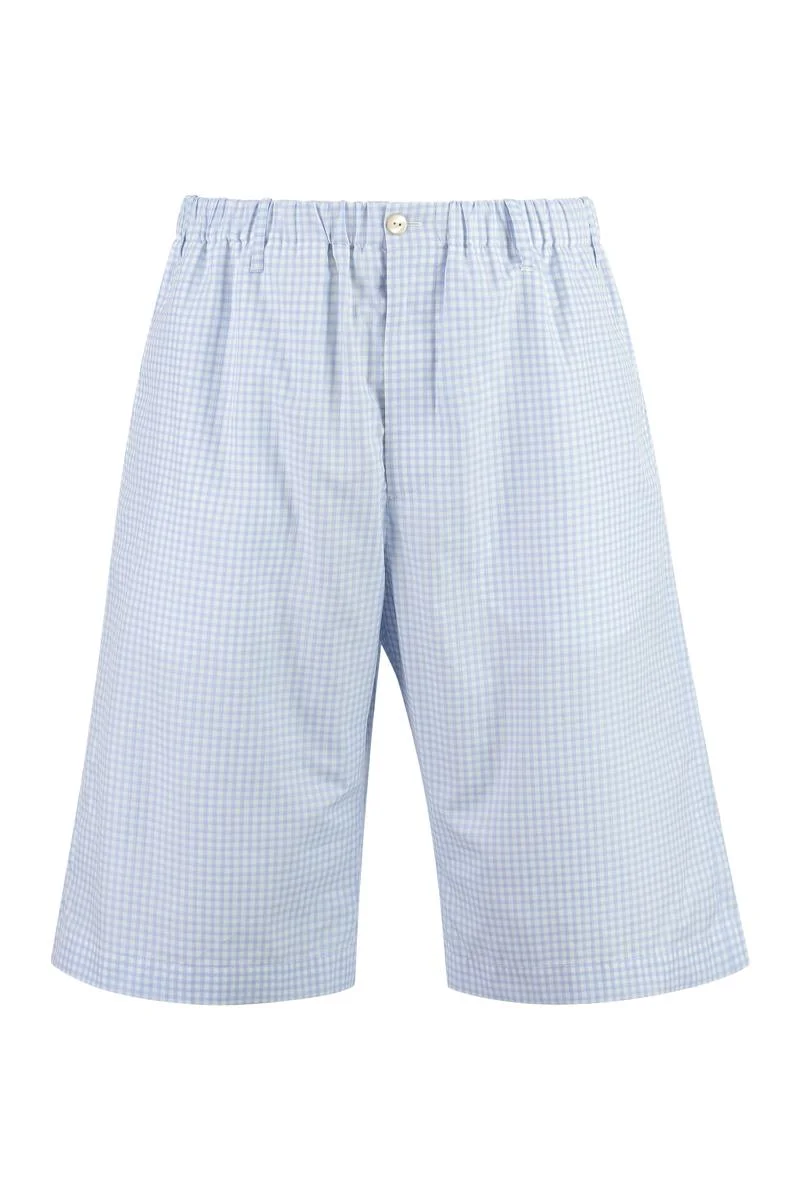 Cotton bermuda shorts Check motif Elastic waistband Two side pockets Two buttoned back pockets 100% Cotton Gender: Men Material: COTTON Color: BLUE Made in: IT Product ID: 738074ZANGD_4305 *Import tax/duty will be calculated at checkout (If applicable)