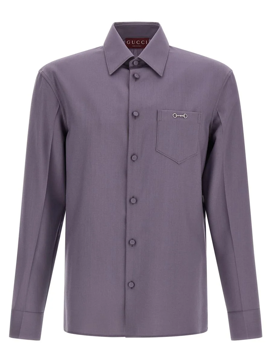 Wool twill shirt with pointed collar, pocket with metal clamp applique, front button closure, long sleeves with cuffs, side slits Gender: Men Material: 100% WOOL Color: PURPLE Made in: Italy Product ID: 841624Z505F5388 *Import tax/duty will be calculated at checkout (If applicable)