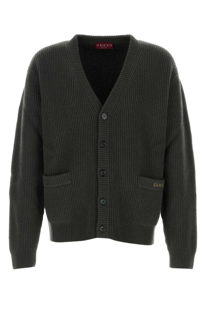 green ribbed knit v-neck front button fastening two front pockets long sleeves - Color: GREEN - Made in: Italy - Designer Style ID: 833501 XKEYK 3019 Composition and care Wool: 100.0%