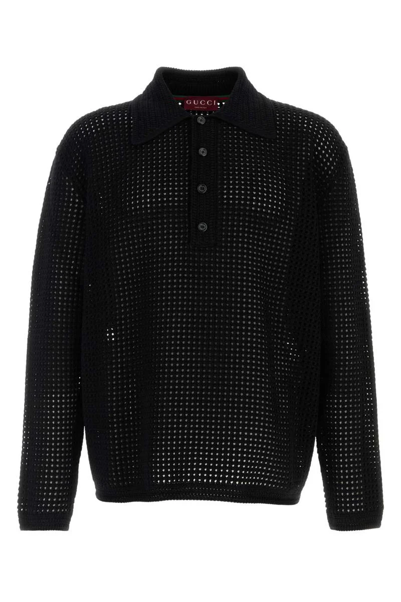 Black crochet polo shirt Gender: Men Material: EXTERIOR: 100% COTTON Color: Black Made in: Italy Product ID: 827353XKEYQ 1000 *Import tax/duty will be calculated at checkout (If applicable)