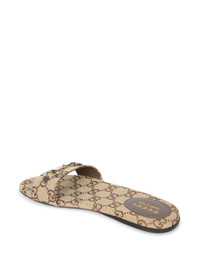All-over GG print design. Adjustable buckle closure. Flat rubber sole.. Exclusive Gucci sandals featuring an iconic GG print on premium canvas, enhanced with a silver buckle that adds a touch of timeless elegance Gender: Women Material: 100% LEATHER Color: Beige Made in: Imported Product ID: 835828 FAB10 2543 *Import tax/duty will be calculated at checkout (If applicable)
