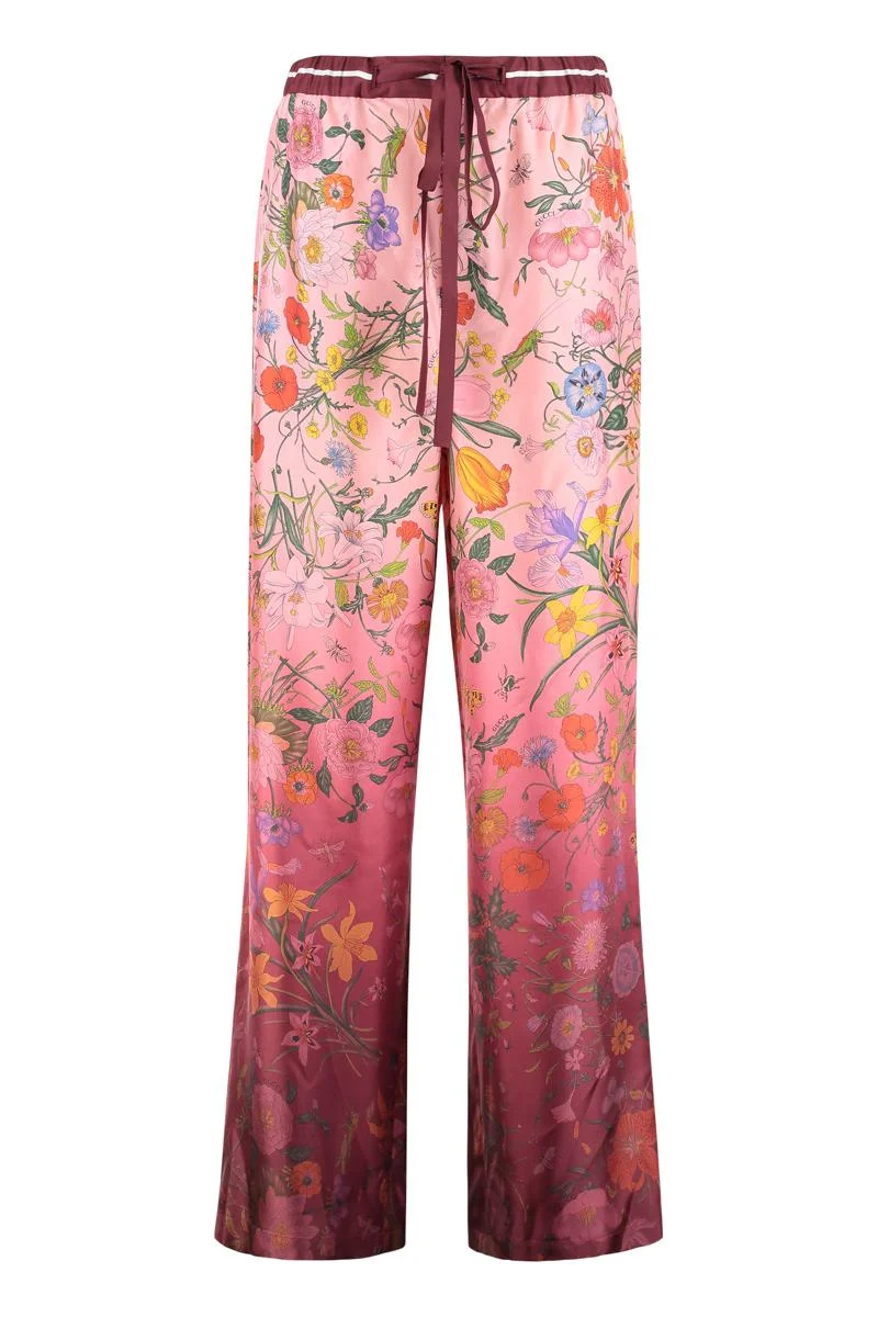 Silk printed pants Loose pants with Flora all-over print. The fit is spacious, ensuring comfort and freedom of movement. They feature a closure with button and zip, an adjustable elasticized waistband with drawstring, two side pockets, and two back pockets. 100% Silk, 75% Acetate, 25% Silk Gender: Women Material: SILK Color: MULTICOLOR Made in: Italy Product ID: 837980Z7AUH_5057 *Import tax/duty will be calculated at checkout (If applicable)
