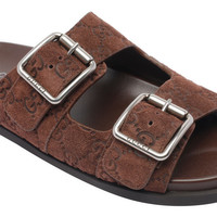 Gucci Brown Gg Slide Sandals, Round Toe, Suede Upper, Gg Logo Allover, EU SIZE (IT) Gender: Men Material: 100% SUEDE LEATHER/RUBBER SOLE Color: BROWN Made in: Italy Product ID: 816380AADUO2256 *Import tax/duty will be calculated at checkout (If applicable)