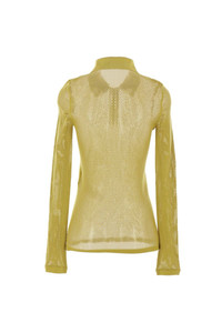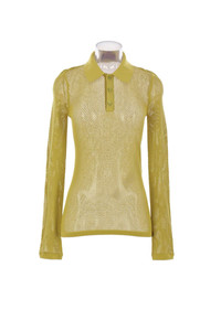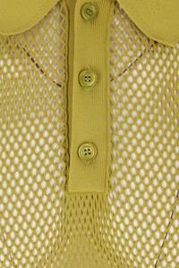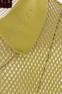 Gucci polo shirt made of pistachio green embossed technical mesh. Featuring a polo collar with embossed logo lettering, three-button placket, long sleeves, and a straight hem. Gender: Men Material: 100% MOTHER PEARL Color: GREEN IVY Made in: Italy Product ID: 821084XKEPG3316 *Import tax/duty will be calculated at checkout (If applicable)
