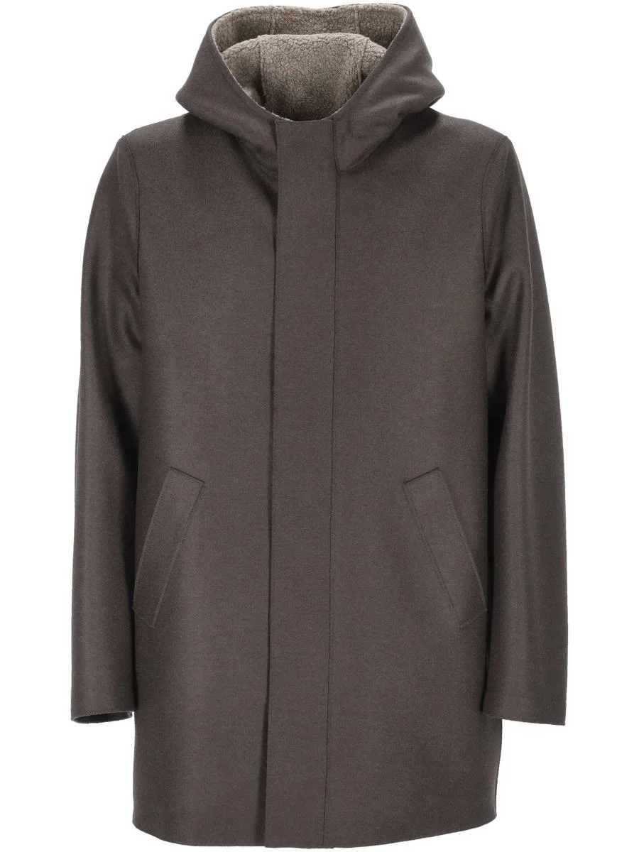 hooded welt-pocket coat