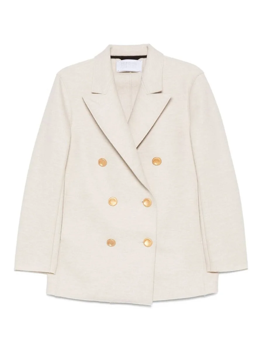 beige double-breasted fastening gold buttons notched lapels long sleeves straight hem Gender: Women Material: VIRGIN WOOL 100% Color: Beige Made in: Italy Product ID: AG2344MLK410 *Import tax/duty will be calculated at checkout (If applicable)