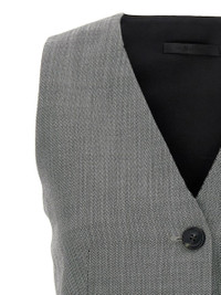 Chevron wool blend vest with button closure, satin back insert, cut-out and adjustable strap Gender: Women Material: 48% WOOL 48% POLYESTER 4% ELASTANE Color: WHITE/BLACK Made in: VN Product ID: N09HW104ACX *Import tax/duty will be calculated at checkout (If applicable)