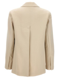 Single-breasted wool blend blazer with button closure, contrasting logo band, pockets, long sleeves, and back split Gender: Women Material: 53% POLYESTER 43% VIRGIN WOOL 4% ELASTANE Color: BEIGE Made in: IMPORTED Product ID: N06HW103WNM *Import tax/duty will be calculated at checkout (If applicable)