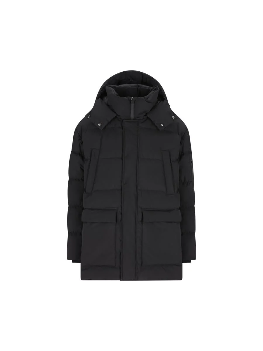 Herno Functional Wardrobe down jacket in black nylon, a technical and versatile model designed for warmth, lightness and weather resistance. Featuring an integrated hood, front zipper closure and side pockets, it combines essential aesthetics with everyday practicality. - Material: 100 percent polyester - Color: black - Lining: 100 percent polyester - Synthetic padding and horizontal quilting - Removable hood - Double zipper and button closure - Raglan shoulders - Large front flap pockets and the utility pocket on the left sleeve - Item number: PI001292U128409300 Gender: Men Color: Black Made in: Imported Product ID: PI001292U128409300_AI25 *Import tax/duty will be calculated at checkout (If applicable)