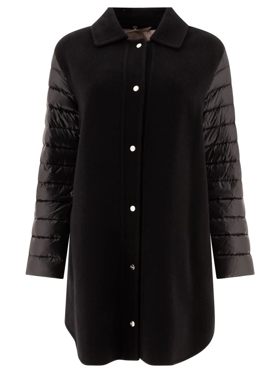 Discover the timeless elegance of Herno's signature wool down jacket. This garment blends stylistic innovation with high quality materials, offering a feeling of refined lightness. The sophisticated design and solid color make it a versatile garment, perfect for the woman looking for a distinctive look. || - Regular fit - Shirt collar - Long sleeves - Snap button closure - Quilted goose down filling || This garment pairs beautifully with cigarette pants or pencil skirts for a professional look. Complete the outfit with a leather shoulder bag and patent leather pumps for unparalleled elegance. Materials: Wool Extra Description: Regular fit;Long sleeves Gender: WOMEN Material: 72% WOOL 28% POLYAMIDE - PADDING: DOWN AND FEATHERS Color: Black Made in: IT Product ID: GC00057DR334159300 *Import tax/duty will be calculated at checkout (If applicable)