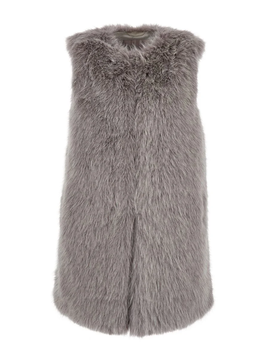 Vest Grey Sleeveless Concealed closure on the front Straight hem Ecofur Regular fit Gender: Women Material: 100% POLYAMIDE Color: GREY Made in: Italy Product ID: GC00065DR126274400 *Import tax/duty will be calculated at checkout (If applicable)