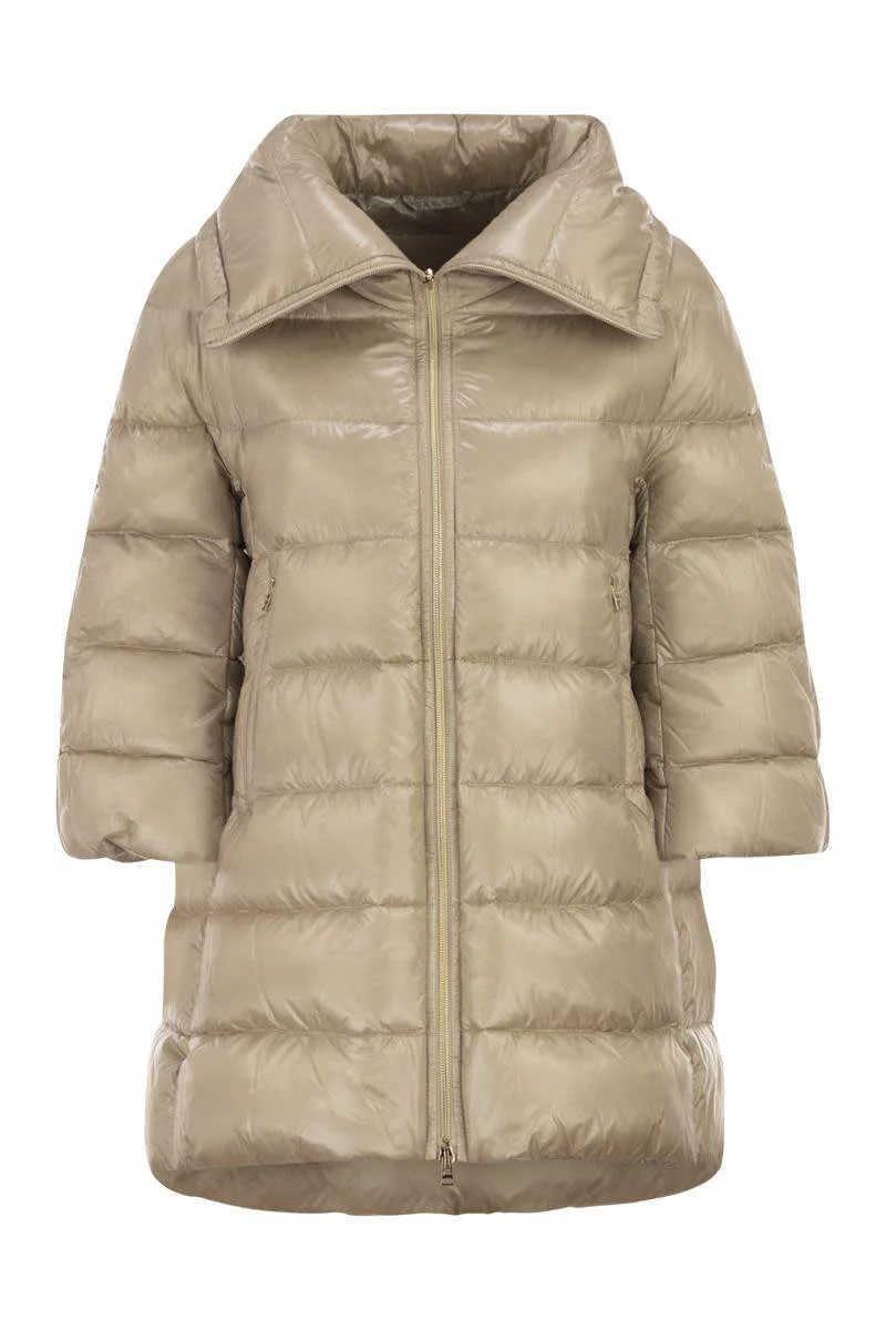 Sand nylon Cleofe down jacket Gender: Women Material: EXTERIOR: 100% NYLON LINING: 100% NYLON PADDING: 90% DOWN 10% FEATHER Color: BEIGE O TAN Made in: RO Product ID: PI0001DIC12017Z 1985 *Import tax/duty will be calculated at checkout (If applicable)