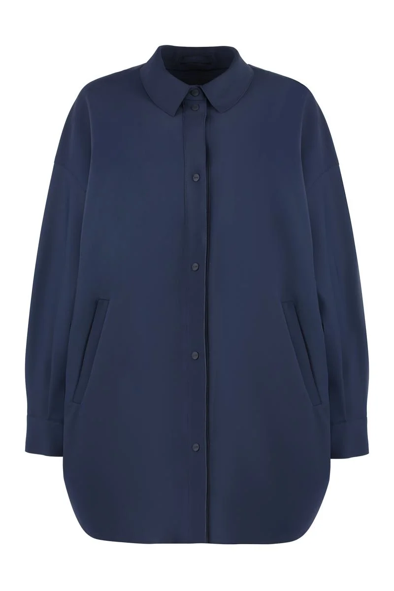 Technical fabric overshirt Two front pockets Rounded hem with side slits 25% Elastane, 75% Polyamide Gender: Women Material: POLYAMIDE Color: BLUE Made in: RO Product ID: GI000231D13455S_9201 *Import tax/duty will be calculated at checkout (If applicable)