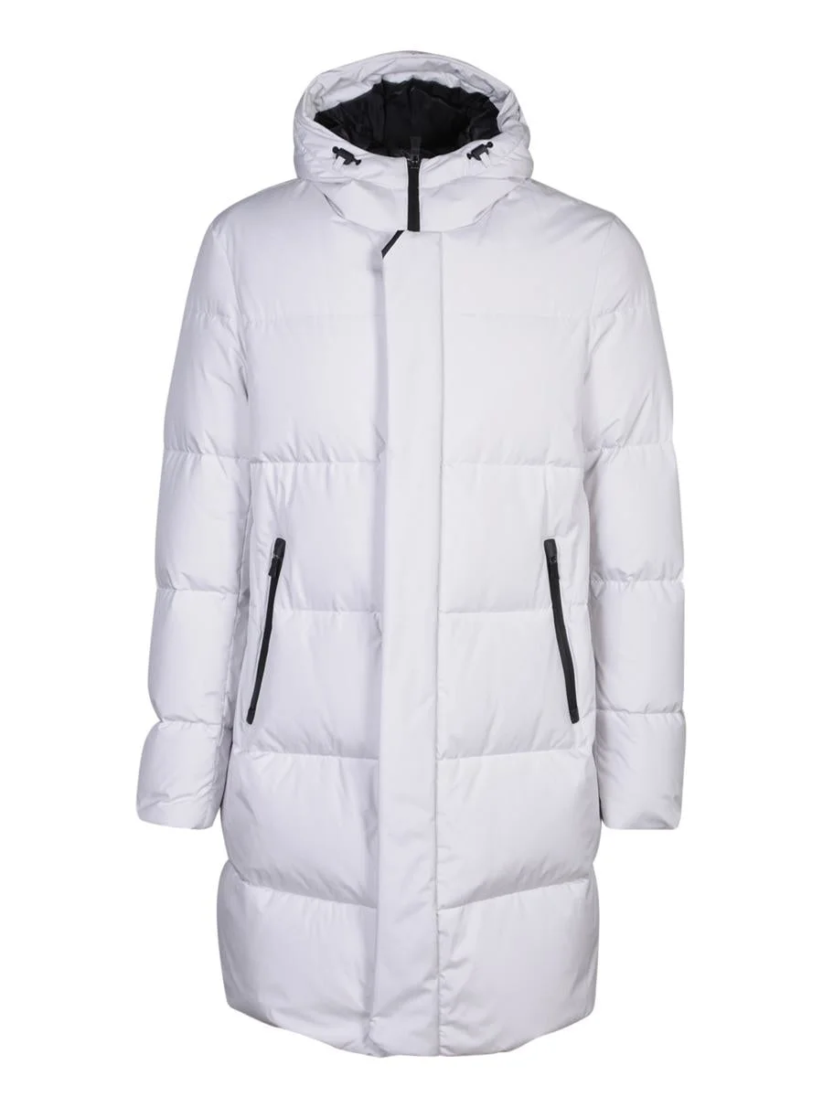 Hooded down jacket by Herno Laminar Drawstring hood. Side pockets. Gender: Men Material: 100% POLYESTER Color: GREY Made in: Imported Product ID: PI00245UL 11106 1250 *Import tax/duty will be calculated at checkout (If applicable)