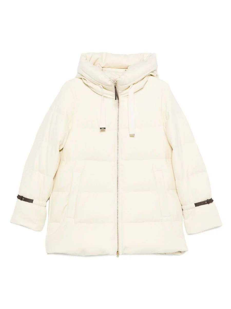 beige quilted design drawstring hood zip fastening Gender: Women Material: FURS & SKINS->GOOSE FEATHER10.0 % SYNTHETIC->ELASTANE3.0 % METALS & ALLOYS->METAL5.0 % FURS & SKINS->GOOSE DOWN90.0 % WOOL OR FINE ANIMAL HAIR->WOOL92.0 % SYNTHETIC->POLYURETHANE100.0 % SYNTHETIC->POLYESTER45.0 % SYNTHETIC->POLYAMIDE100.0 % NATURAL Color: WHITE Made in: Italy Product ID: PI002104D334671100 *Import tax/duty will be calculated at checkout (If applicable)