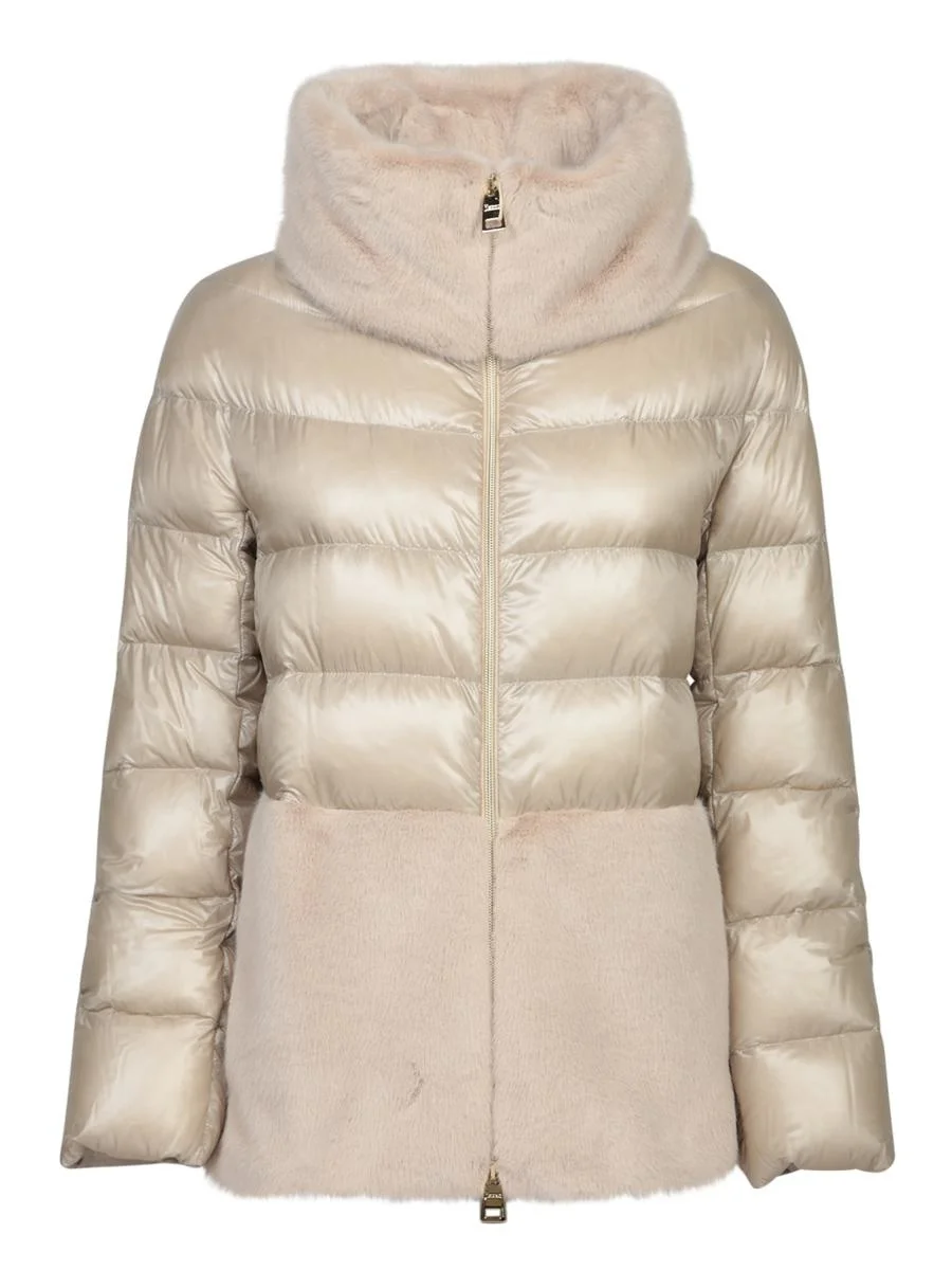 Jacket featuring a blend of nylon and fur inserts. Front zip closure. Beige color. Elegance meets practicality in this Herno beige nylon jacket, enhanced with soft Chantilly fur inserts for a touch of understated luxury. Ideal for colder days, it provides warmth without compromising on style. Gender: Women Material: 100% POLYAMIDE Color: Beige Made in: Imported Product ID: PI001933D 12017Z 1985 *Import tax/duty will be calculated at checkout (If applicable)