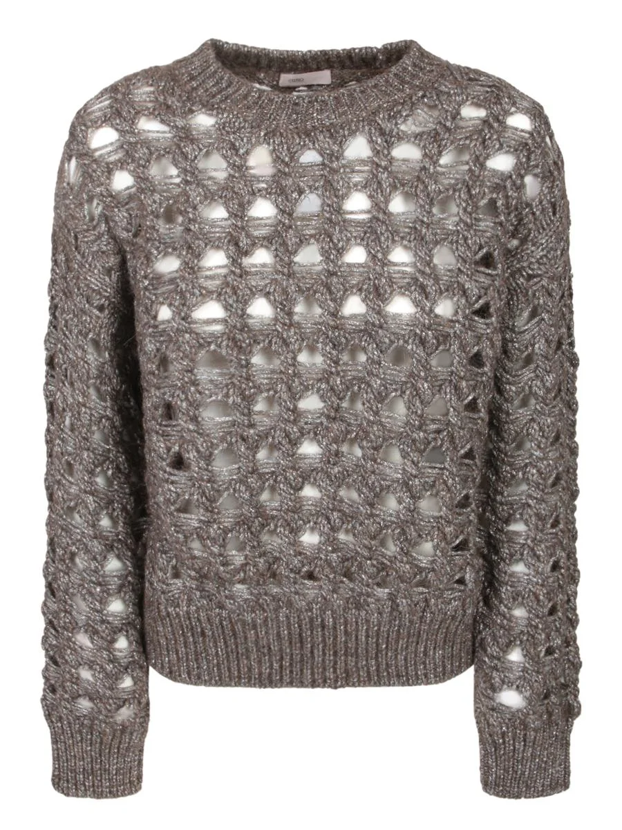Netted design. Long sleeves. Crew neck. A distinctive piece by HERNO, this alpaca wool sweater features a netted weave adding a touch of uniqueness, while its grey hue makes pairing easy. Gender: Women Material: 48% ALPACA 23% METALLIC 21% POLYAMIDE 8% WOOL Color: BROWN Made in: Imported Product ID: MG00032DR 70198 8810 *Import tax/duty will be calculated at checkout (If applicable)