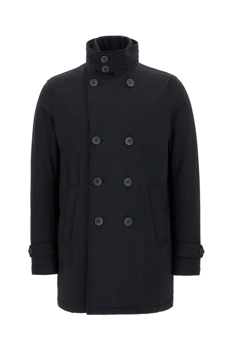 Double-Breasted Padded Stretch-Shell Down Peacoat Navy