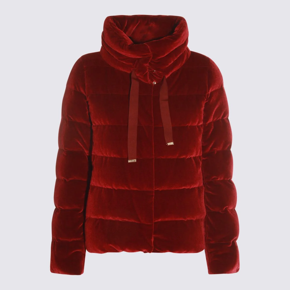 Red down jacket from Herno featuring high collar, long sleeves, frontal fastening and pockets. Size Type: Woman IT Gender: Women Material: 90%POLYESTER 10%ELASTANE Color: Red Made in: Romania Product ID: PI002180D15020S6705 *Import tax/duty will be calculated at checkout (If applicable)
