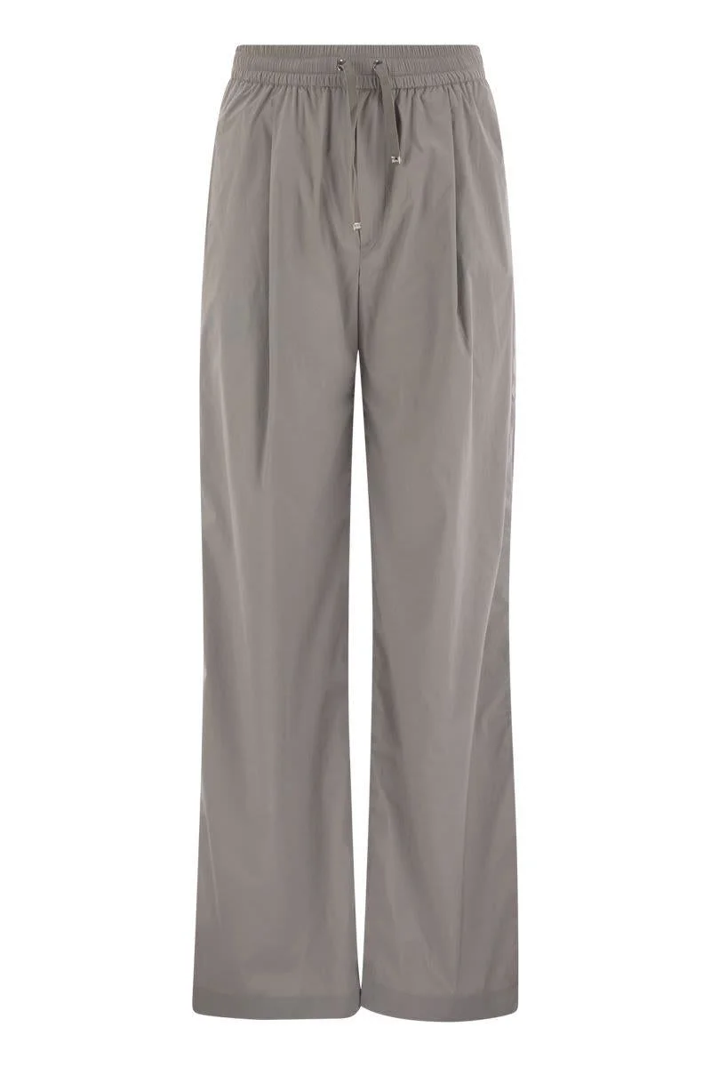Trousers made of a skilful combination of 20 denier stretch nylon with a matt and light appearance. The model has a wide but feminine line with elegant darts at the front and an elastic insert at the waist that smoothly follows the movements. - Relaxed fit - Darts - Elastic insert with drawstring waistband - Pockets on the hips - Patch pockets on the back - Herno logo on the back DESIGNER ID: PT00009DR12431SZ 9433 Gender: Women Material: 86% POLYAMIDE, 14% ELASTANE TRIMMING: 55% COTTON, 45% POLYESTER Color: LIGHT GREY Made in: MD Product ID: PT00009DR12431SZ 9433 *Import tax/duty will be calculated at checkout (If applicable)