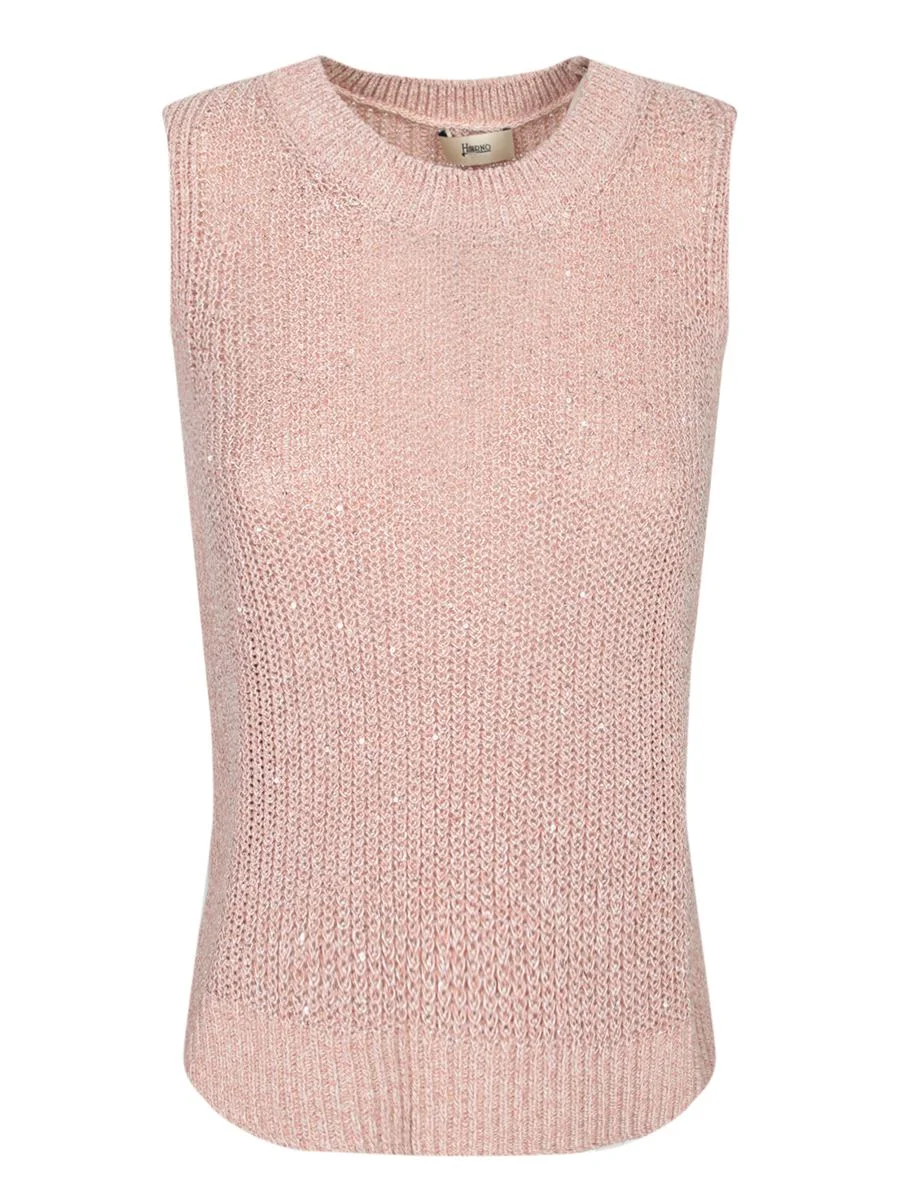 powder pink crew neck sleeveless ribbed hem Gender: Women Material: 46% POLYESTER 36% COTTON 16% VISCOSE 2% OTHER FIBERS Color: PINK Made in: RO Product ID: MG000167D 76068 4002 *Import tax/duty will be calculated at checkout (If applicable)