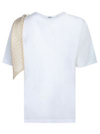 Short sleeves, crew neck, scarf detail.. Exclusive Herno white cotton t-shirt, featuring an elegant silk scarf tied at the neck for a sophisticated and distinctive touch Gender: Women Material: 92% COTTON 8% ELASTANE Color: WHITE Made in: Imported Product ID: JG000276D 52003 1012 *Import tax/duty will be calculated at checkout (If applicable)