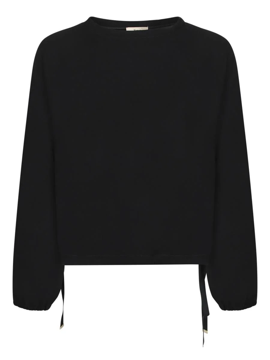 Long sleeve blouse with adjustable cuffs details. Round neckline and smooth fabric. Elegant black blouse by Herno featuring soft sleeves ending with adjustable drawstring cuffs. Clean and versatile design for a sophisticated look on any occasion. Gender: Women Material: 100% POLYESTER Color: Black Made in: Imported Product ID: BL000031D 12755 9300 *Import tax/duty will be calculated at checkout (If applicable)