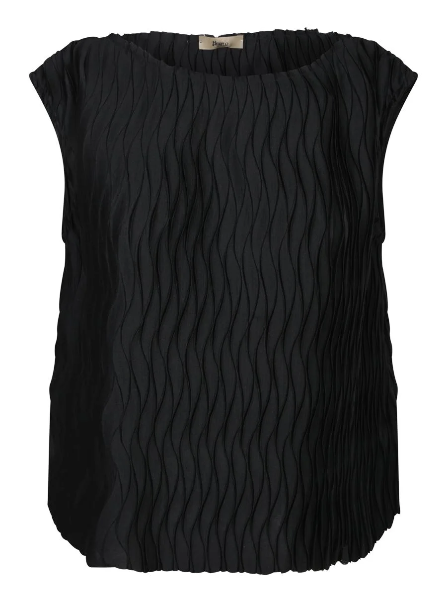 Sleeveless top. Embossed fabric. Round neckline. HERNO black jersey top, featuring an intriguing embossed fabric that adds a sophisticated textural note. The clean design and round neck make it a versatile and elegant piece. Gender: Women Material: 100% POLYESTER Color: Black Made in: Imported Product ID: JG000272D 52102 9300 *Import tax/duty will be calculated at checkout (If applicable)