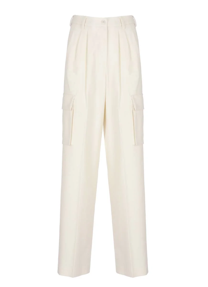 - Herno women's cream cargo pants - Straight fit - Pleated detailing - Button fastening - Two side cargo pockets with flaps Model's height is 176 cm and she wears a size 40 Gender: Women Material: 43% WOOL 28% VISCOSE 27% POLYESTER 2% ELASTANE Color: Beige Made in: Imported Product ID: PT000179D334531000 *Import tax/duty will be calculated at checkout (If applicable)