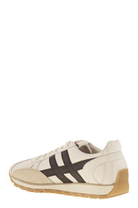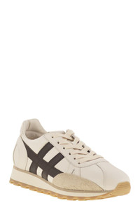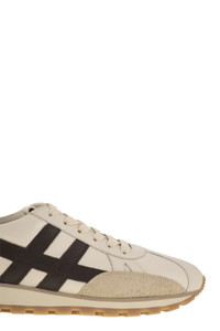 A tribute to the famous trainers that helped define the brand's birth year, the Hogan 86er trainers feature the iconic H detail. The extra-light sole has a tread with studs that also reinforce the heel. Completed by a soft insole, these nappa leather trainers are perfect for an easy, relaxed outfit. - Hogan 86er men's trainers - Made in Italy - Nappa leather upper - Smooth leather H applied to the side - Suede details - Soft 4.5 mm leather-covered insole - EVA sole - Care and maintenance instructions included - Fabric bag included - Includes an extra pair of laces DESIGNER ID: HXM6710FP0IUGR01RW Measures: Total height: 4 cm Gender: Men Material: UPPER: TASSEL, H SMOOTH LEATHER AND SUEDE DETAILS LINING: TASSEL AND TEXTILE FIBRES SOLE: EVA Color: IVORY/BROWN Made in: Italy Product ID: HXM6710FP0IUGR01RW *Import tax/duty will be calculated at checkout (If applicable)