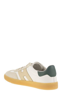 A perfect blend of retro elements and contemporary lines, Hogan Cool trainers are characterised by a sober and refined look. Featuring a padded tongue, the upper is made of smooth leather with a notched H on the side in nappa leather. The sole echoes the oblique monogram on the tread, while the memory foam insole ensures a cushioned fit. - Hogan Cool men's trainers - Smooth leather upper - Suede inserts - Side H and nappa leather details - 16 mm memory foam insole - Rubber (TPU) box sole - Care and maintenance instructions included - Fabric bag included - Includes an extra pair of laces DESIGNER ID: HXM6470FB60UHC0MAF Measures: Total height: 2.8 cm Gender: Men Material: UPPER: SMOOTH LEATHER, SUEDE LEATHER AND H AND NAPPA LEATHER DETAILS LINING: TEXTILE FIBRES AND NAPPA SOLE: RUBBER TPU Color: WHITE Made in: Imported Product ID: HXM6470FB60UHC0MAF *Import tax/duty will be calculated at checkout (If applicable)