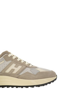 Featuring fluid and snappy shapes, Hogan Hyperlight sneakers combine the lines of jogging shoes with elements with an urban vocation. The suede upper with lateral H evokes iconic details of the brand. A dynamic model with a memory foam insole and a light sole with cleats. Hogan Hyperlight sneakers for men - Made in Italy. - Suede leather upper - Smooth leather inserts - Mesh details - Lateral H - 8mm memory foam insole - Rubber outsole - Fabric pouch included - Includes an additional pair of laces DESIGNER ID: HXM5630FK70U4P743O Measures: Total height: 4.5 cm Gender: Men Material: UPPER: SUEDE, MESH AND SMOOTH LEATHER LINING: TEXTILE FIBRES AND LEATHER SOLE: RUBBER Color: Beige Made in: IT Product ID: HXM5630FK70U4P743O *Import tax/duty will be calculated at checkout (If applicable)