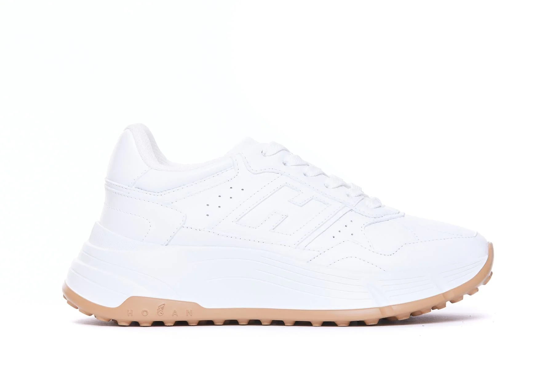 Hogan Hi-Fi trainers femininely declines the Hyperlight sole with cleats, with a raised platform for elevation and elegance. Evoking the sporty iconography of the 1980s with technical finishes and an urban vocation, they are characterised by a combination of soft and snappy lines. The upper is here made of smooth leather, with a maxi H on the side band. An energetic athleisure model, with a memory foam footbed that ensures extra comfort and a cushioned fit. - Hogan Hi-Fi women's trainers - Made in Italy - Smooth leather upper - Notched H side - 8 mm memory foam footbed - Rubber sole - Fabric pouch included - Includes an additional pair of laces DESIGNER ID: HXW6690FK70JUSB001 Measures: Total height: 6,5 cm Gender: Women Material: UPPER: SMOOTH LEATHER LINING: TEXTILE FIBRES AND LEATHER SOLE: RUBBER Color: WHITE Made in: IT Product ID: HXW6690FK70JUSB001 *Import tax/duty will be calculated at checkout (If applicable)