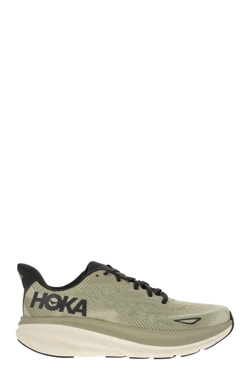 Light and soft, for grinding out miles every day. This trainer is the ninth version of the award-winning Clifton line, lighter and more cushioned than ever before. Eliminating weight and adding 3mm of stack height, the new Clifton 9 delivers revitalising sensations to the sole of the foot with a new responsive foam and improved sole design. Deprived of reinforcements and heat-deflecting elements, the simplified upper has been crafted using environmentally conscious methods and features a softer heel, a reflective panel on the heel and a streamlined tongue with a medial side kerchief. - Suitable for street and walking - Breathable technical fabric upper - Gusseted tongue - Laces made of recycled nylon (70%) and recycled polyester (30%), excluding needlepoint - Compression moulded EVA foam midsole - MetaRocker™ near instep - Perfectly stable geometry - Durabrasion Rubber outsole - Vegan model - Recycled polyester mesh upper (35%) - Recycled polyester collar and tongue lining (60%) - Recycled polyester strobel footbed (87%) - Recycled polyester (100%) upper insole fabric DESIGNER ID: 1127895 SSFR Measures: Sole height: 5 cm Gender: Men Material: UPPER: RECYCLED POLYESTER MESH AND CREEL JACQUARD LINING: RECYCLED POLYESTER SOLE: DURABRASION RUBBER Color: GREEN Made in: VN Product ID: 1127895 SSFR *Import tax/duty will be calculated at checkout (If applicable)