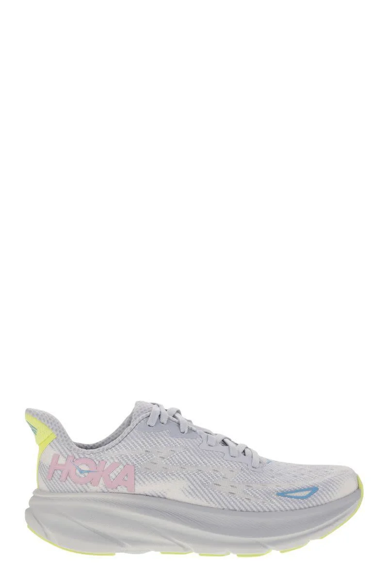 Light and soft, for grinding out miles every day. This trainer is the ninth version of the award-winning Clifton line, lighter and more cushioned than ever before. Eliminating weight and adding 3mm of stack height, the new Clifton 9 delivers revitalising sensations to the sole of the foot with a new responsive foam and improved sole design. Deprived of reinforcements and heat-deflecting elements, the simplified upper has been crafted using environmentally conscious methods and features a softer heel, a reflective panel on the heel and a streamlined tongue with a medial side kerchief. - Suitable for street and walking - Breathable technical fabric upper - Gusseted tongue - Laces made of recycled nylon (70%) and recycled polyester (30%), excluding needlepoint - Compression moulded EVA foam midsole - MetaRocker™ near instep - Perfectly stable geometry - Durabrasion Rubber outsole - Vegan model - Recycled polyester mesh upper (35%) - Recycled polyester collar and tongue lining (60%) - Recycled polyester strobel footbed (87%) - Recycled polyester (100%) upper insole fabric DESIGNER ID: 1127896 GLLS Measures: Sole height: 5 cm Gender: Women Material: UPPER: RECYCLED POLYESTER MESH AND CREEL JACQUARD LINING: RECYCLED POLYESTER SOLE: DURABRASION RUBBER Color: ICE Made in: VN Product ID: 1127896 GLLS *Import tax/duty will be calculated at checkout (If applicable)