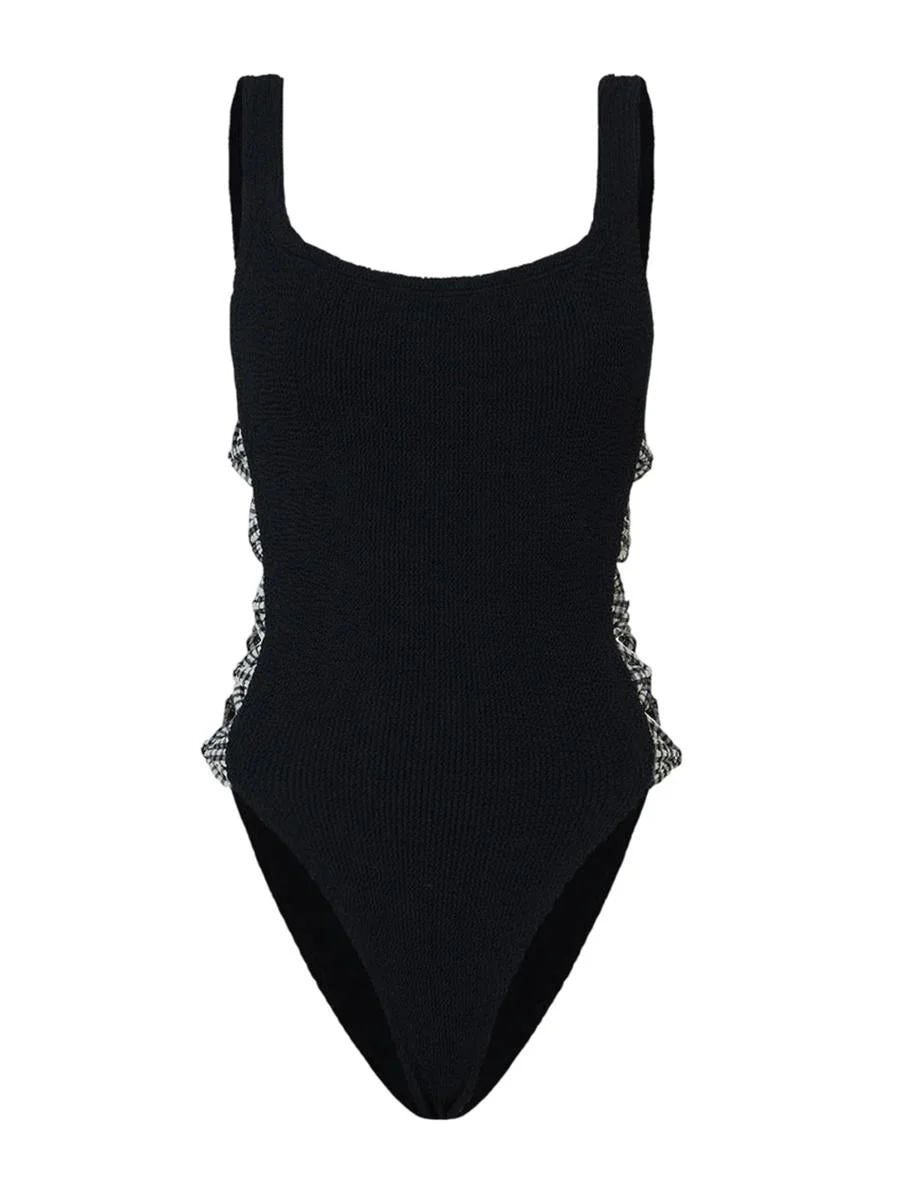 Tiffany Swimsuit Black Check The Tiffany™ Swimsuit features a square neckline, a low back and a gingham seersucker bow with tone-on-tone cutouts along both sides. 97%PA3%EA ID STIFFANYC Gender: Women Material: POLYAMIDE Color: Black Made in: Imported Product ID: 94694 STIFFANYC 93833 *Import tax/duty will be calculated at checkout (If applicable)