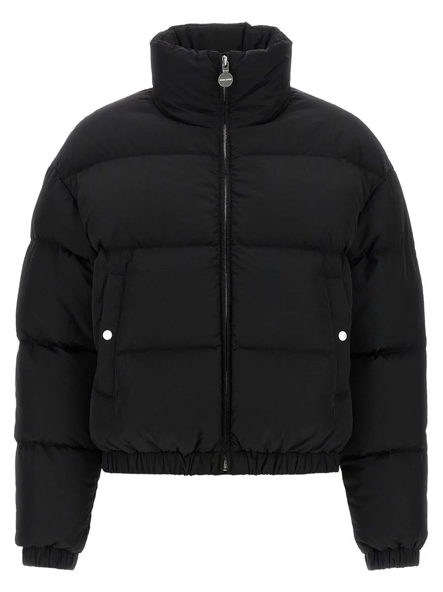 'Cool' quilted water-repellent nylon jacket with goose down padding, slightly cropped model, standing collar, front zip closure, pockets, long sleeves with elastic cuffs and dropped shoulder, elastic at the hem Gender: Women Material: 100% NYLON Color: Black Made in: Imported Product ID: COOLJACKETENNIONYLONENNIOBLACK *Import tax/duty will be calculated at checkout (If applicable)