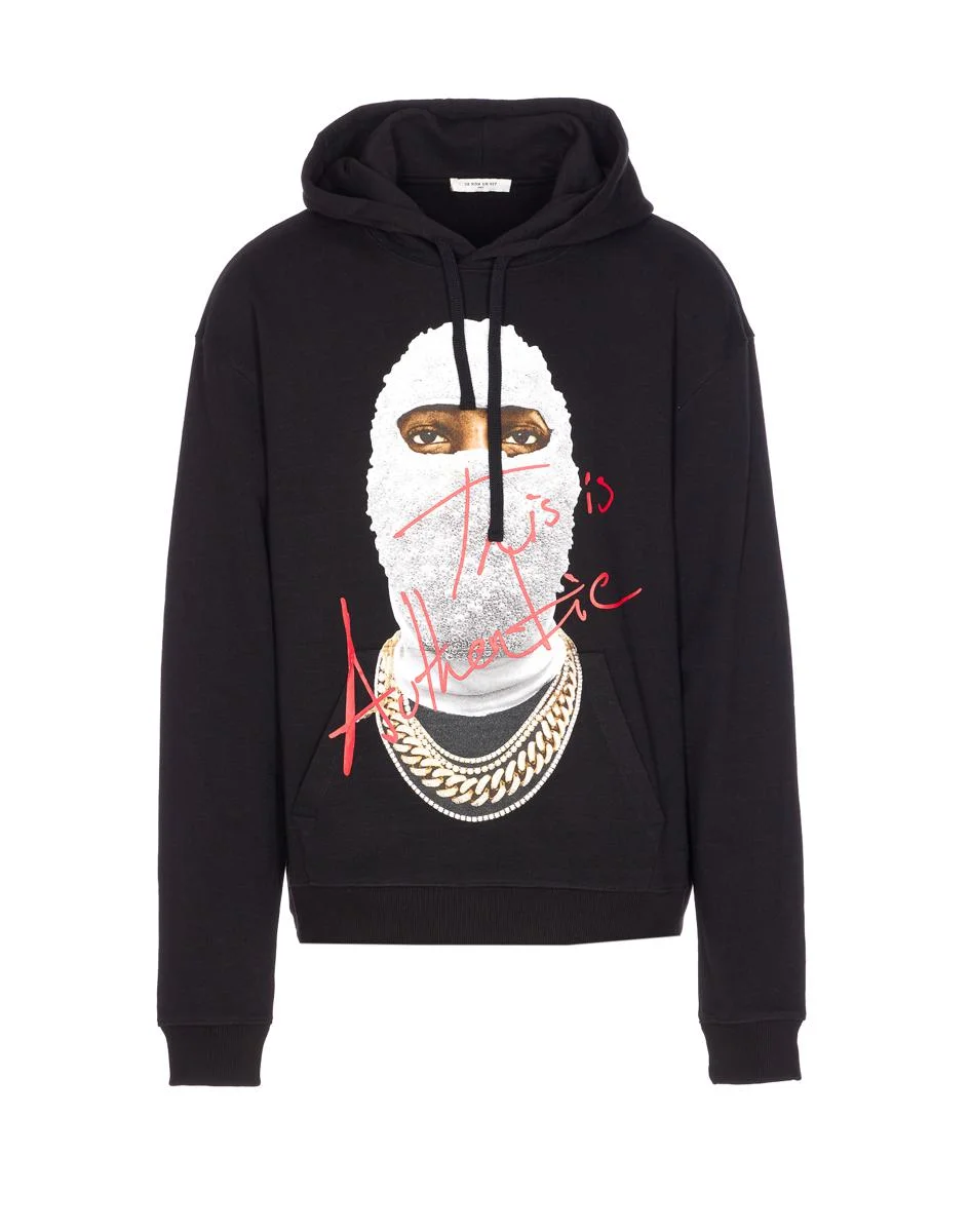 Ih Nom Uh Nit Black Mask Authentic Hoodie, Print On The Front, Long Sleeves, Kangaroo Pocket, Inner Logo, US SIZE Gender: Men Material: 100% COTTON Color: Black Made in: Italy Product ID: NUW25261009 *Import tax/duty will be calculated at checkout (If applicable)