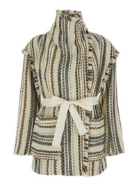 Isabel Marant Étoile 'Illisa' Beige High Neck Cardigan With Fringed Details And All-Over Striped Mot
