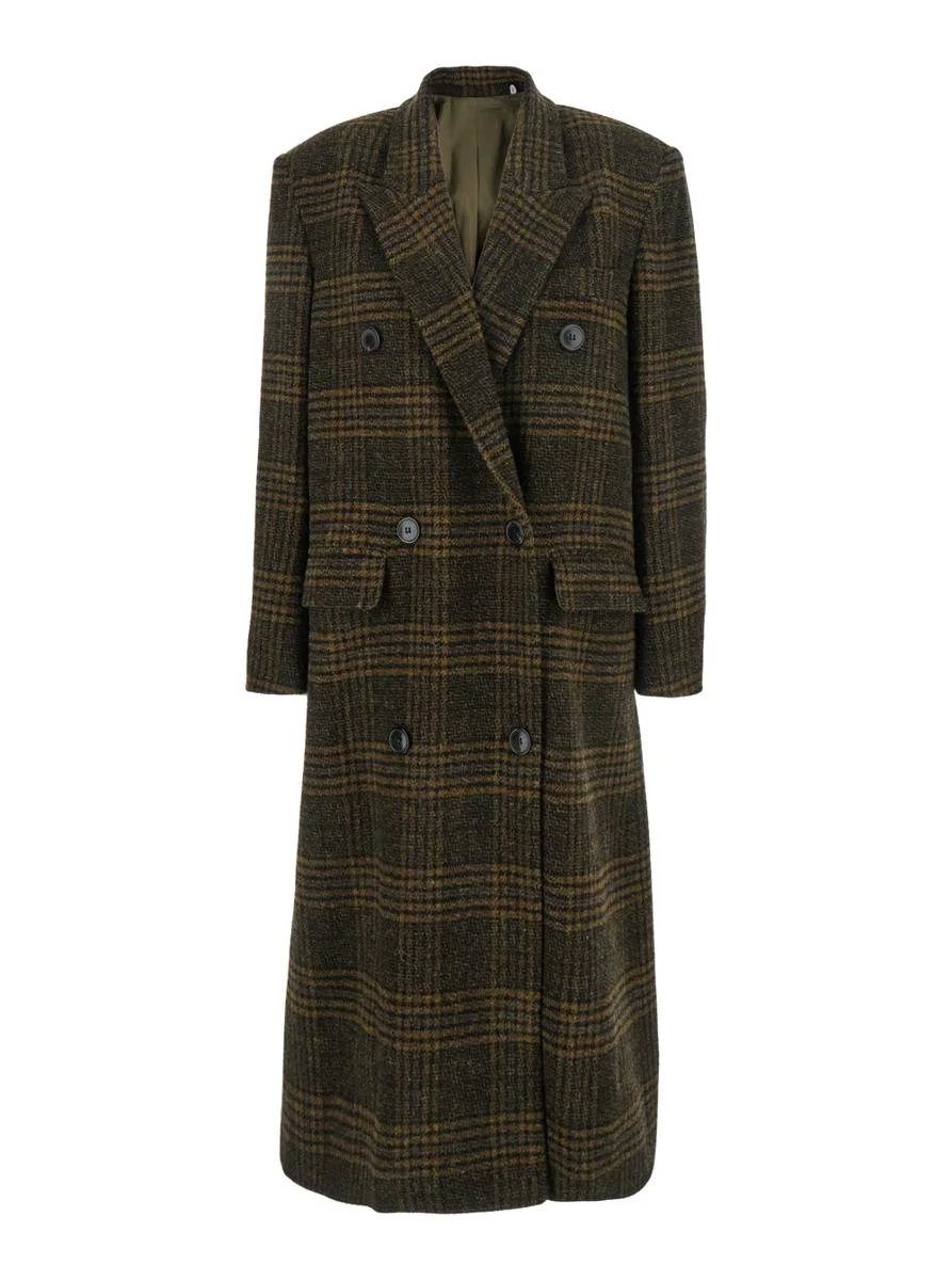 Isabel Marant Étoile 'Lexana' Green Double-Breasted Coat With Peak Revers And All-Over Check Motif I