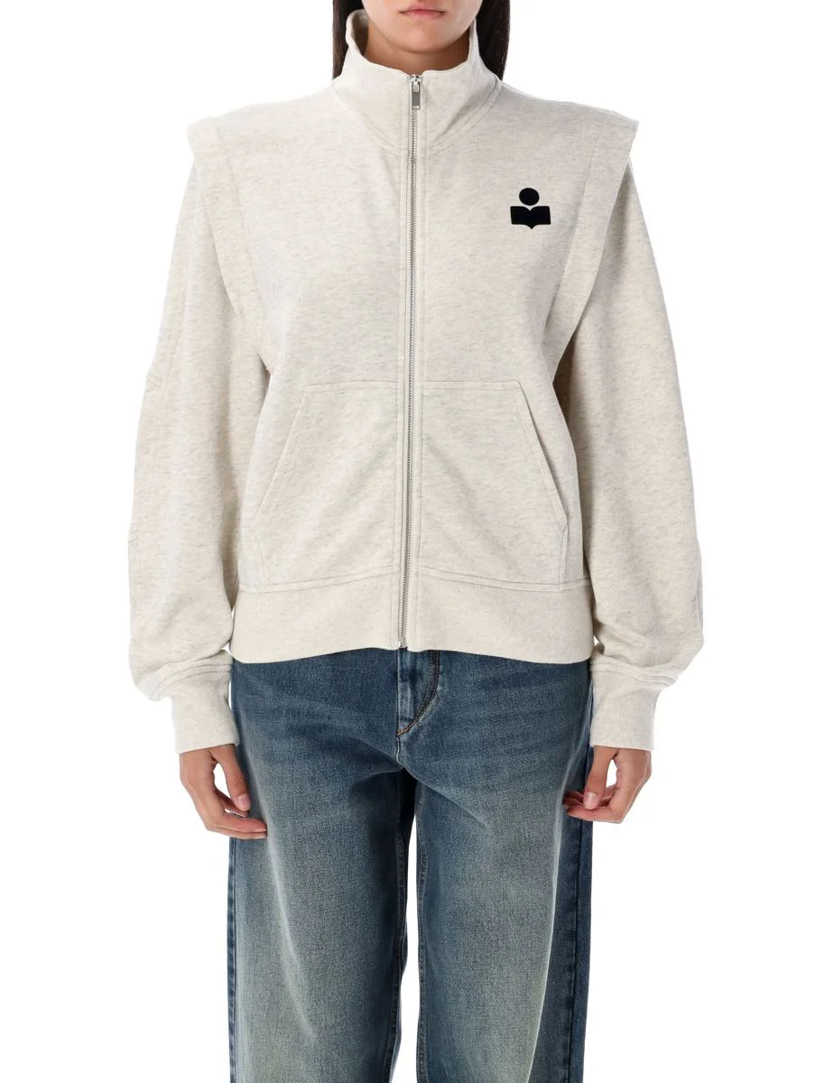 Cotton blend Madilia sweatshirt by Marant Etoile. Featuring: High neck Full zip fastening Flocked logo at chest Turn-down shoulders Long sleeves Kangaroo pocket Rib trims Relaxed fit Model is 1,70 m and wears size 36 Gender: Women Material: 88% COTTON 12% POLYESTER Color: Beige Made in: Portugal Product ID: 25ASW0159FAA1M07E#23EC *Import tax/duty will be calculated at checkout (If applicable)
