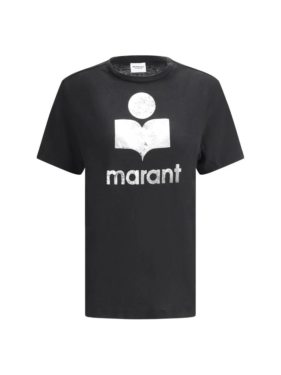 LINEN ZEWEL T-SHIRT FROM MARANT ETOILE, RIBBED CREW NECK, MONOCHROME DESIGN, ICONIC BRAND MONOGRAM PRINTED IN CONTRAST AT FRONT, REGULAR FIT. STANDARD Gender: Women Material: LINEN Color: Black Made in: TN Product ID: TS0001FBA1N10E_01BK *Import tax/duty will be calculated at checkout (If applicable)